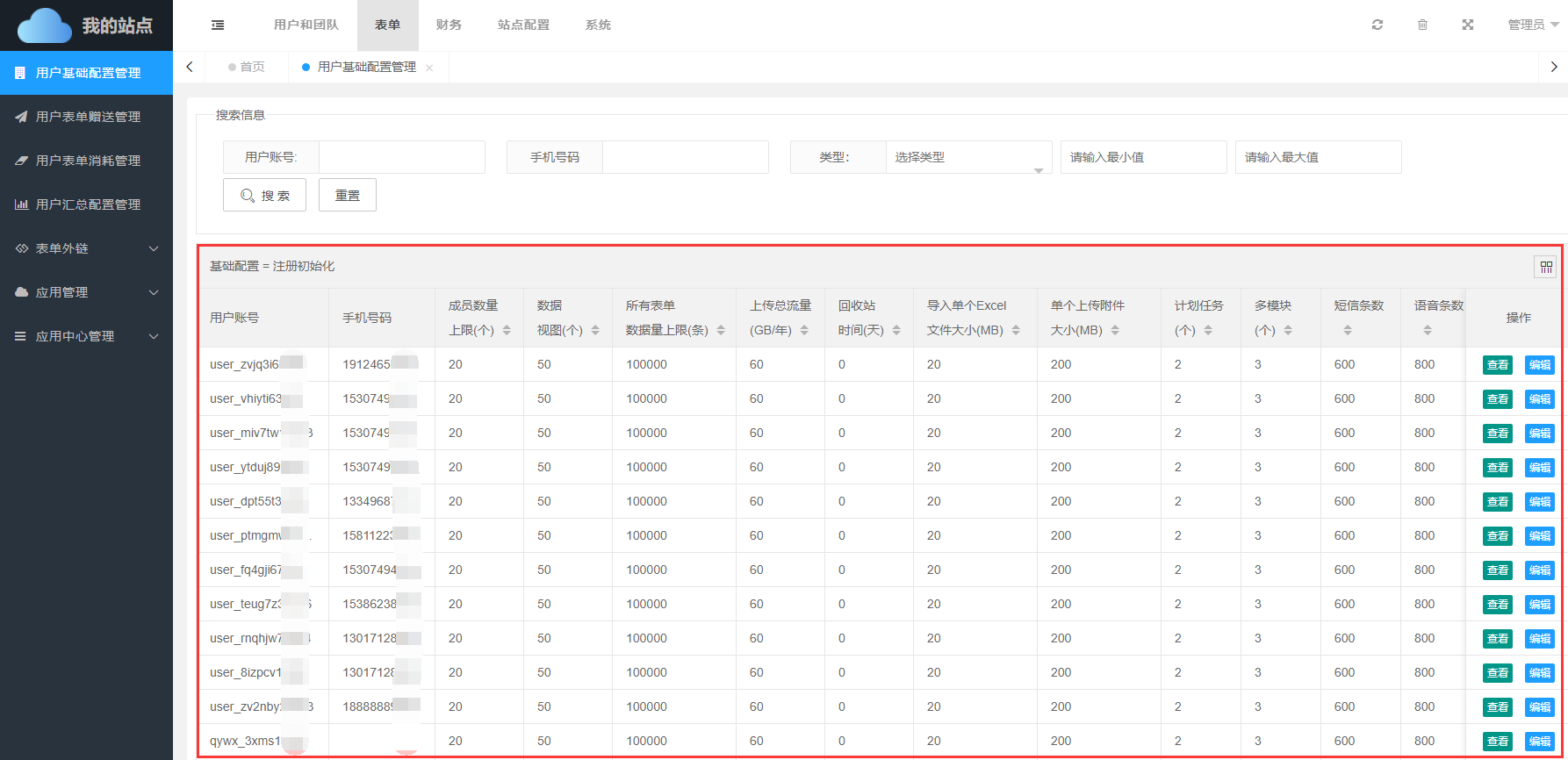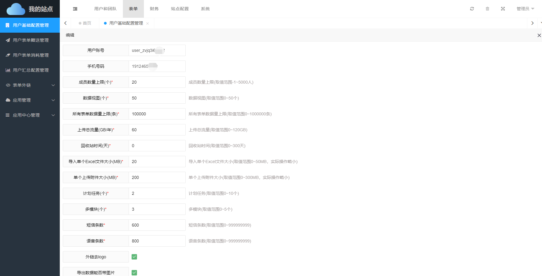 • 所有表单数据量上限(条):可提交表单数据总条数