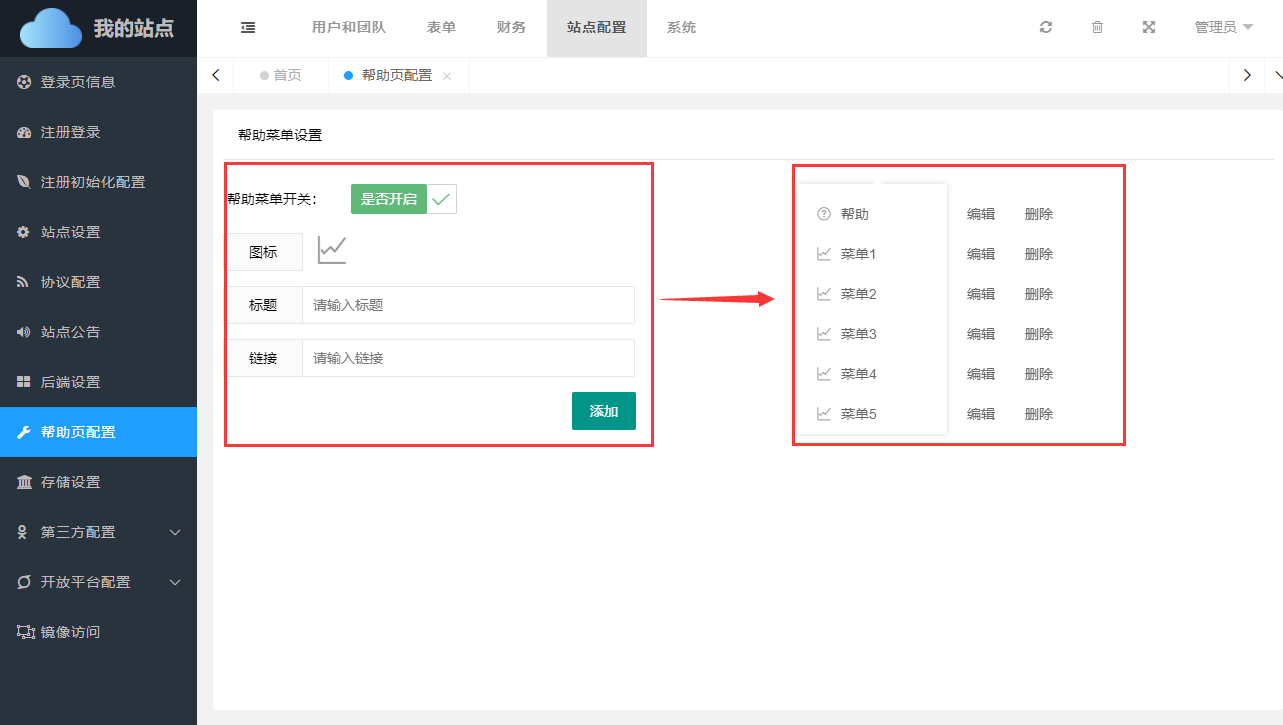 注: 已添加的帮助菜单无法调整位置,如需调整,可删除后重新添加。