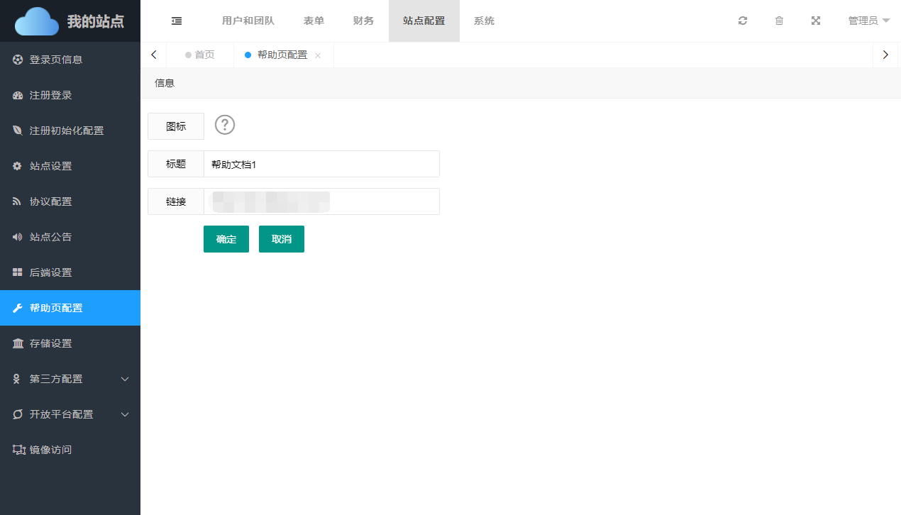 添加帮助菜单需选择图标,输入对应的标题和链接。