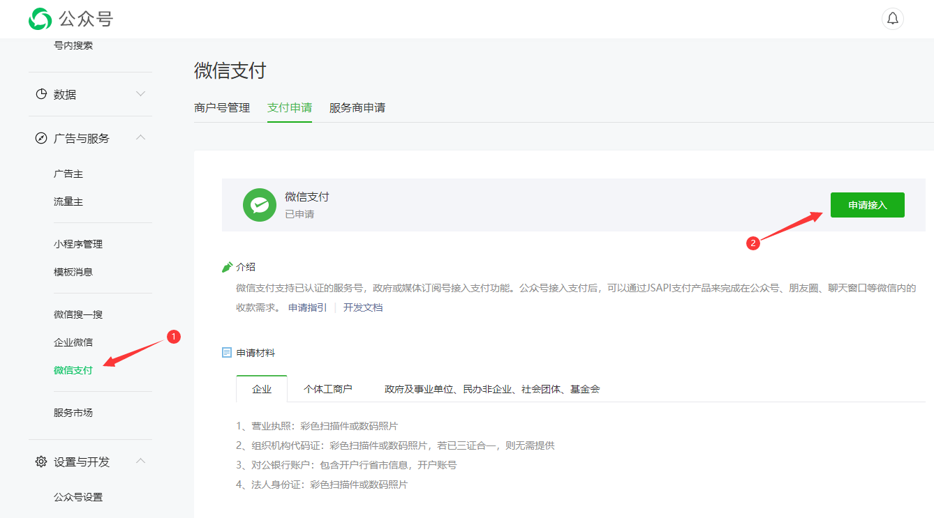 2. 申请微信支付