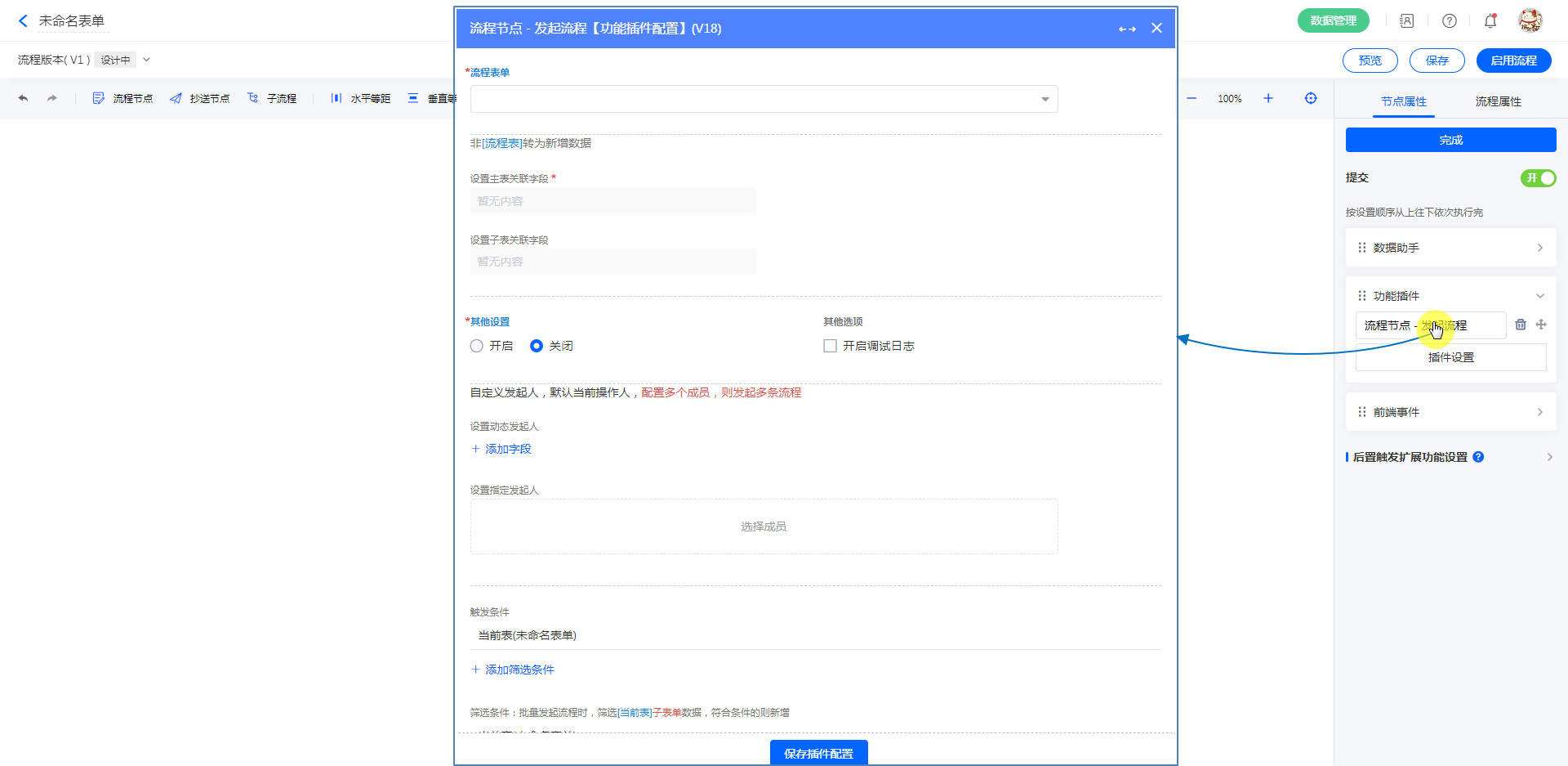 | 流程功能插件配置功能插件界面 |