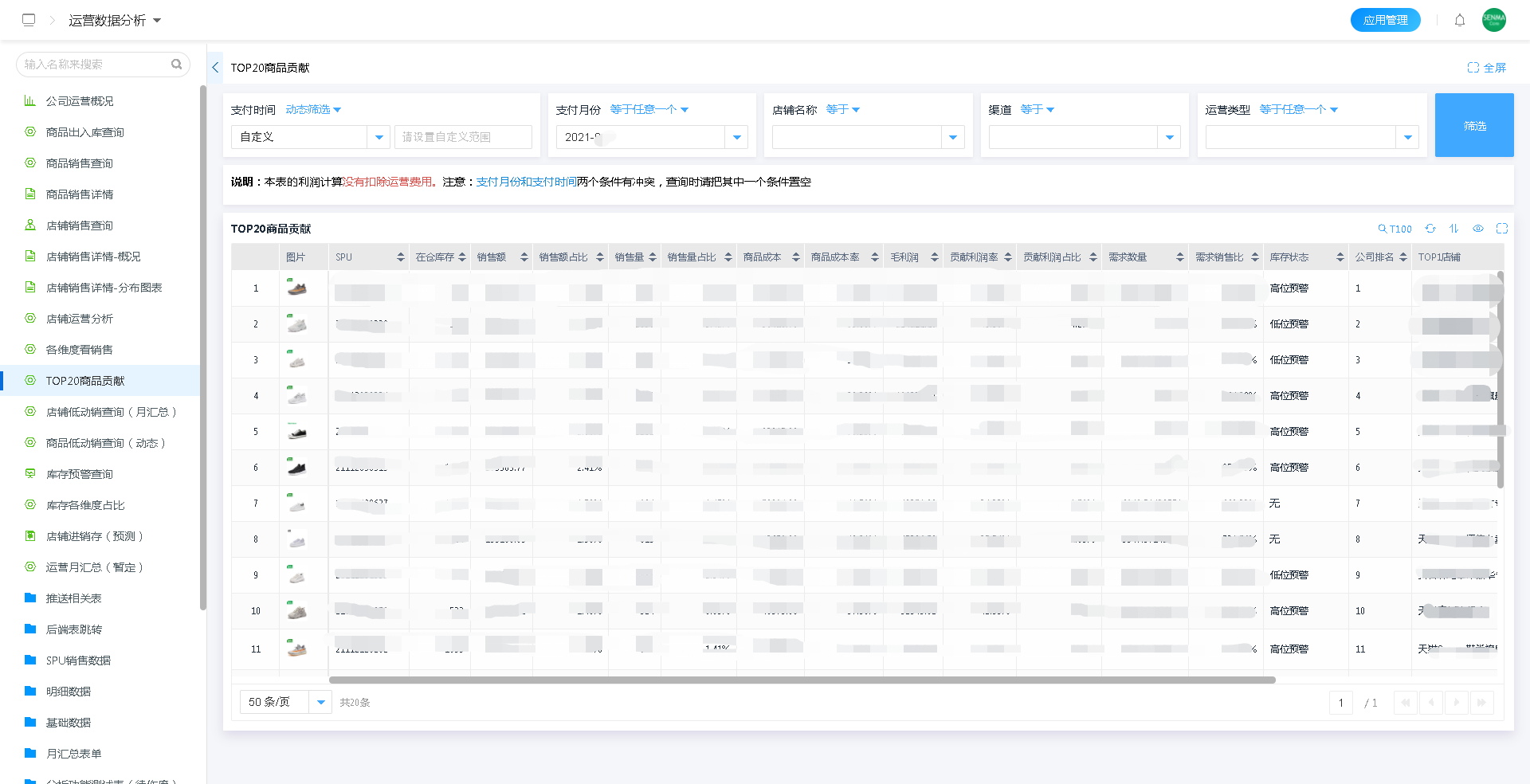 通过使用百数平台强大的计算能力,对商品销售数据的分析,在千万级的基础数据中计算出TOP20商品贡献的商品,有助于企业在后续的运营、推广等环节针对性的做出正确的决策。
