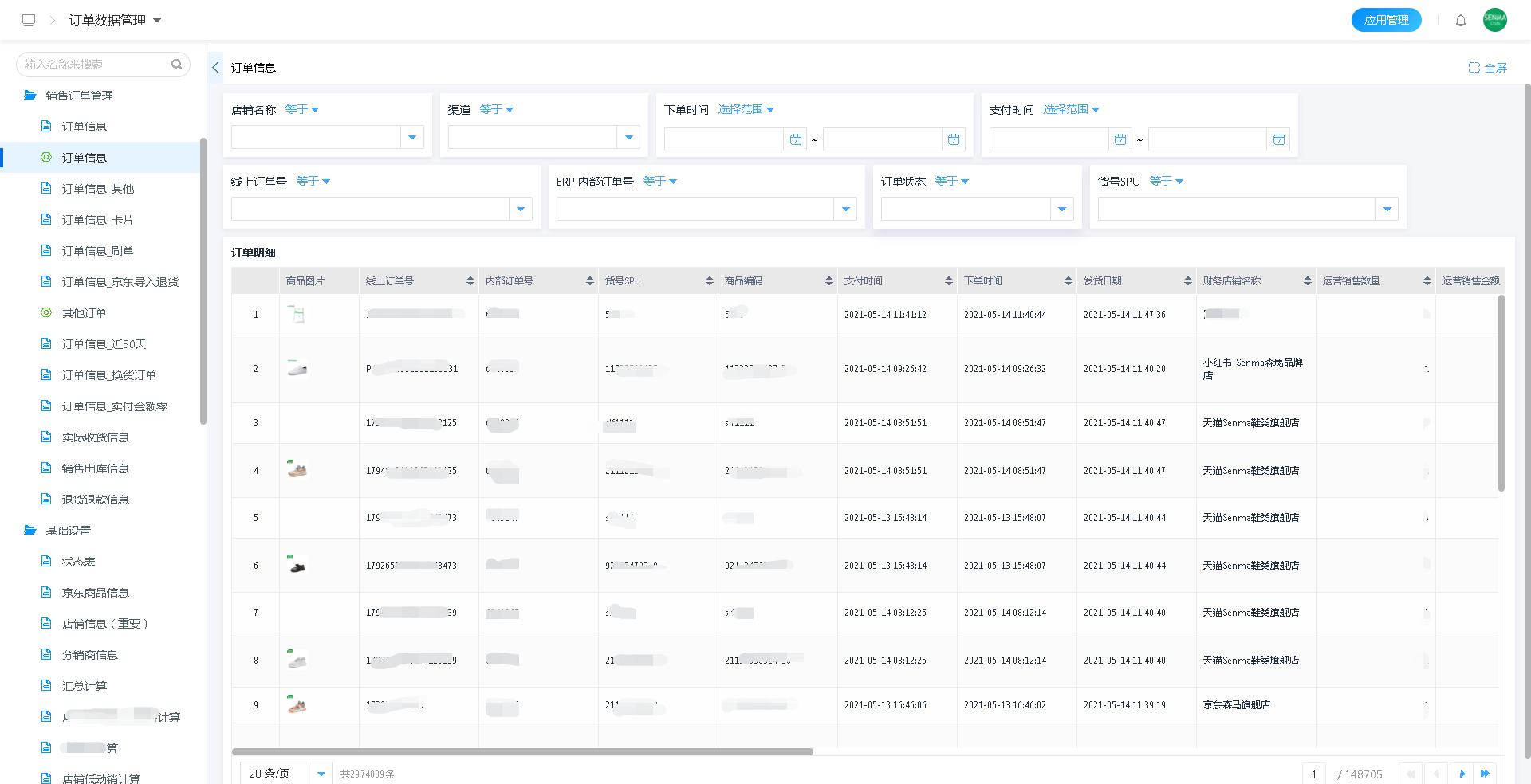 通过对接百数平台和聚水潭,在聚水潭上积累的海量订单数据及仓储数据接入百数平台后,即可在百数平台里实现数据的查看、管理。