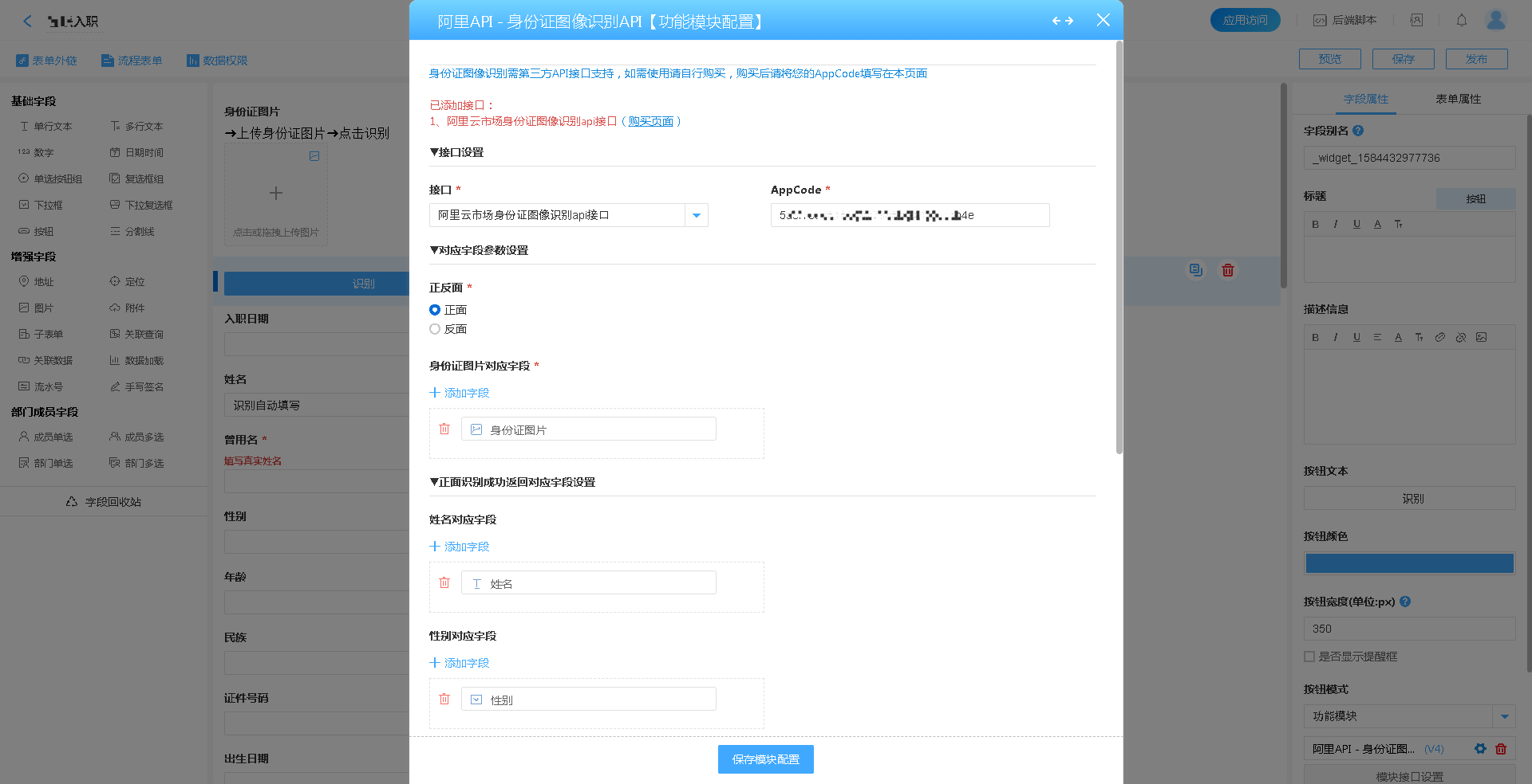 1、利用百数对接外部API的能力,全自动识别入职员工的身份信息,减少繁琐的个人信息输入步骤,大大提升了人事办事效率。