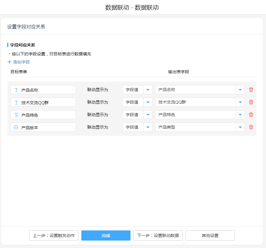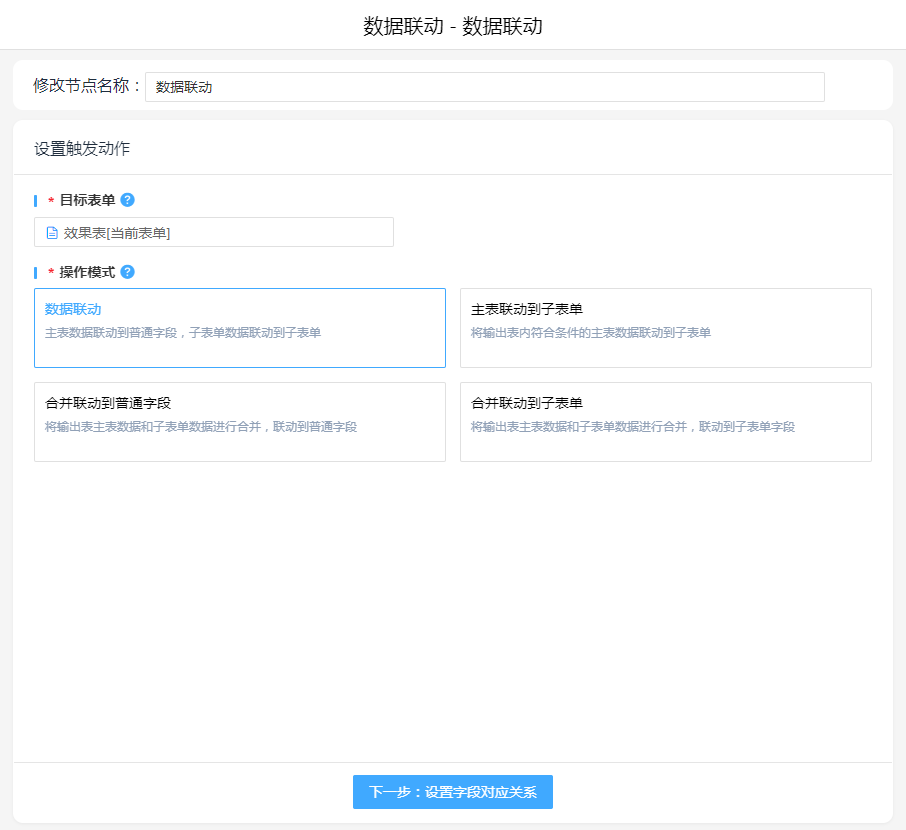 通过对表单初始化或者控件进行数据助手配置,实现表单之间关联数据。