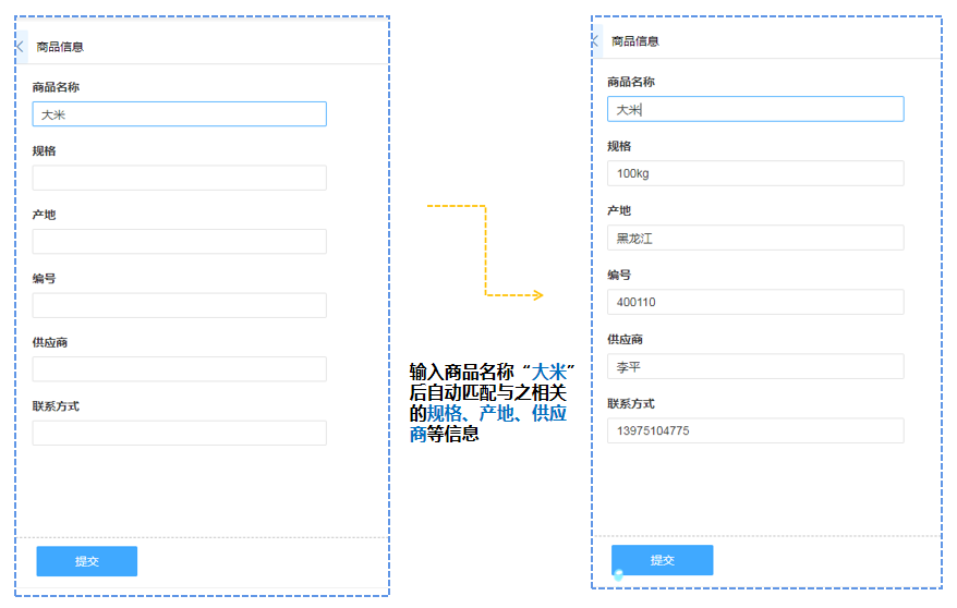 保存插件配置后,在商品表单中录入任意商品名称,与之关联的规格、产地、编号等一系列进货信息将自动匹配呈现,帮助相关管理人员高效准确的进行商品信息管理。