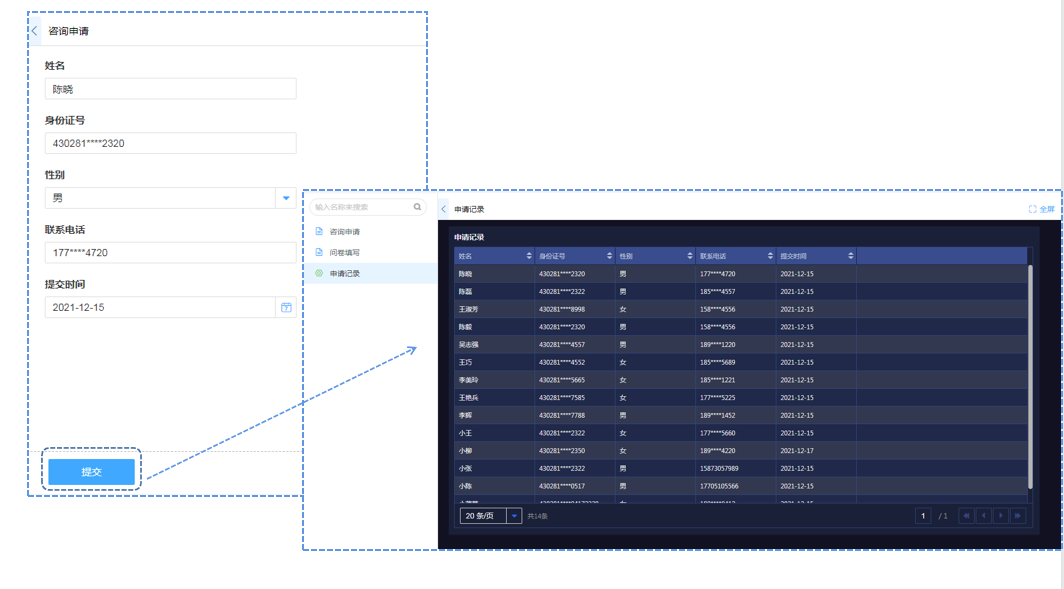 点击确定,设置保存后,我们进入到应用当中,在申请表单提交后,将自动跳转到申请记录页面。