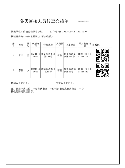 隔离点管理人员通过扫描转运单上的二维码接收隔离人员信息进行登记,分发房间号接收入住。 被隔离人员进入隔离点时,自行通过扫码,登记个人信息。 达到隔离期,人员无异常,通过扫码自行填写解除隔离信息及去向登记。