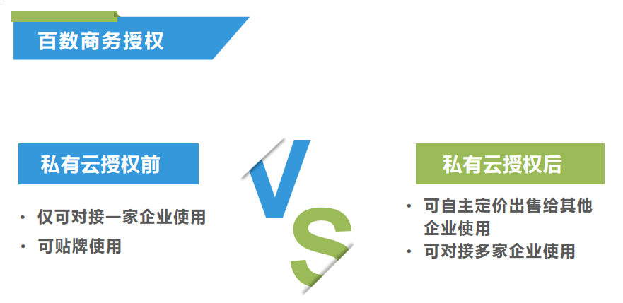 百数商务授权模式不同于私有云仅可对接对接一个团队贴牌使用,而是为企业打开平台对接多团队的能力,且为企业提供盈利能力。