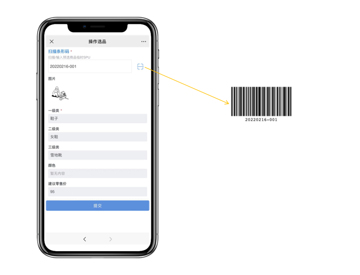 进入预选列表的商品都将匹配一个条形码和临时的商品spu,选品工作人员直接扫描条形码或者将临时spu复制到选品表单,即可快速加载商品相关数据。