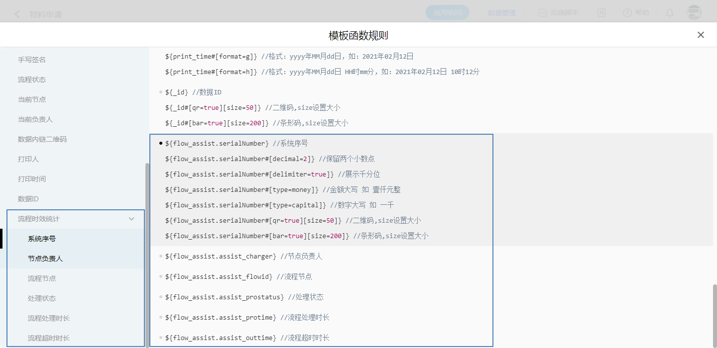 打印模板中使用流程时效统计