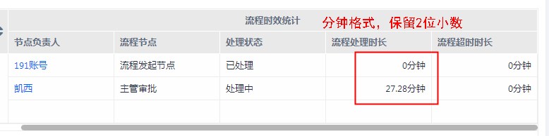 • 报表展示[流程时效统计]字段