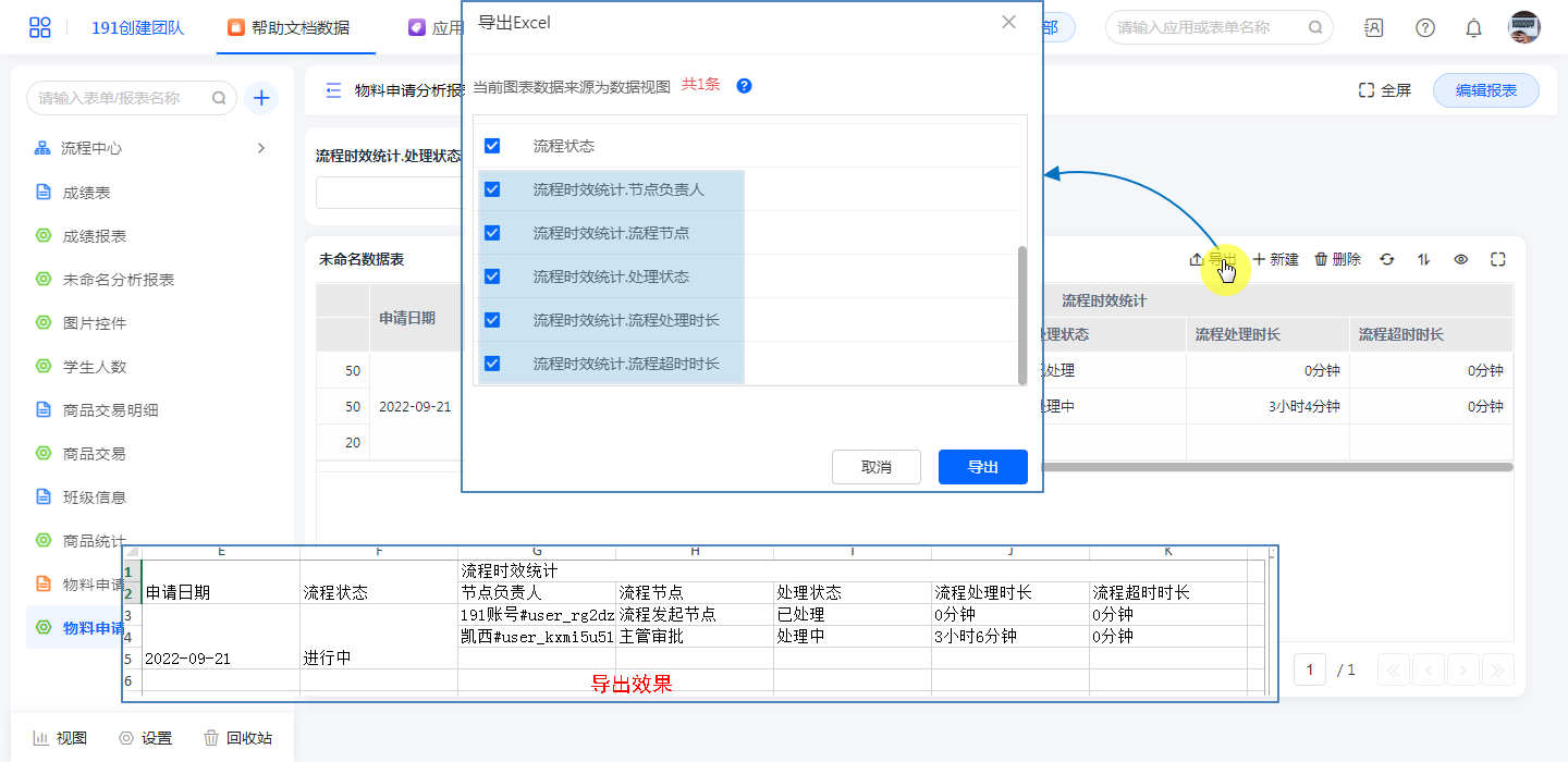 支持将[流程时效统计]数据导出到本地。