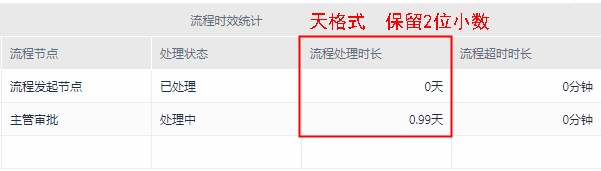 [流程时效统计]字段的子字段[流程处理时长]和[流程超时时长]支持设置数据格式: