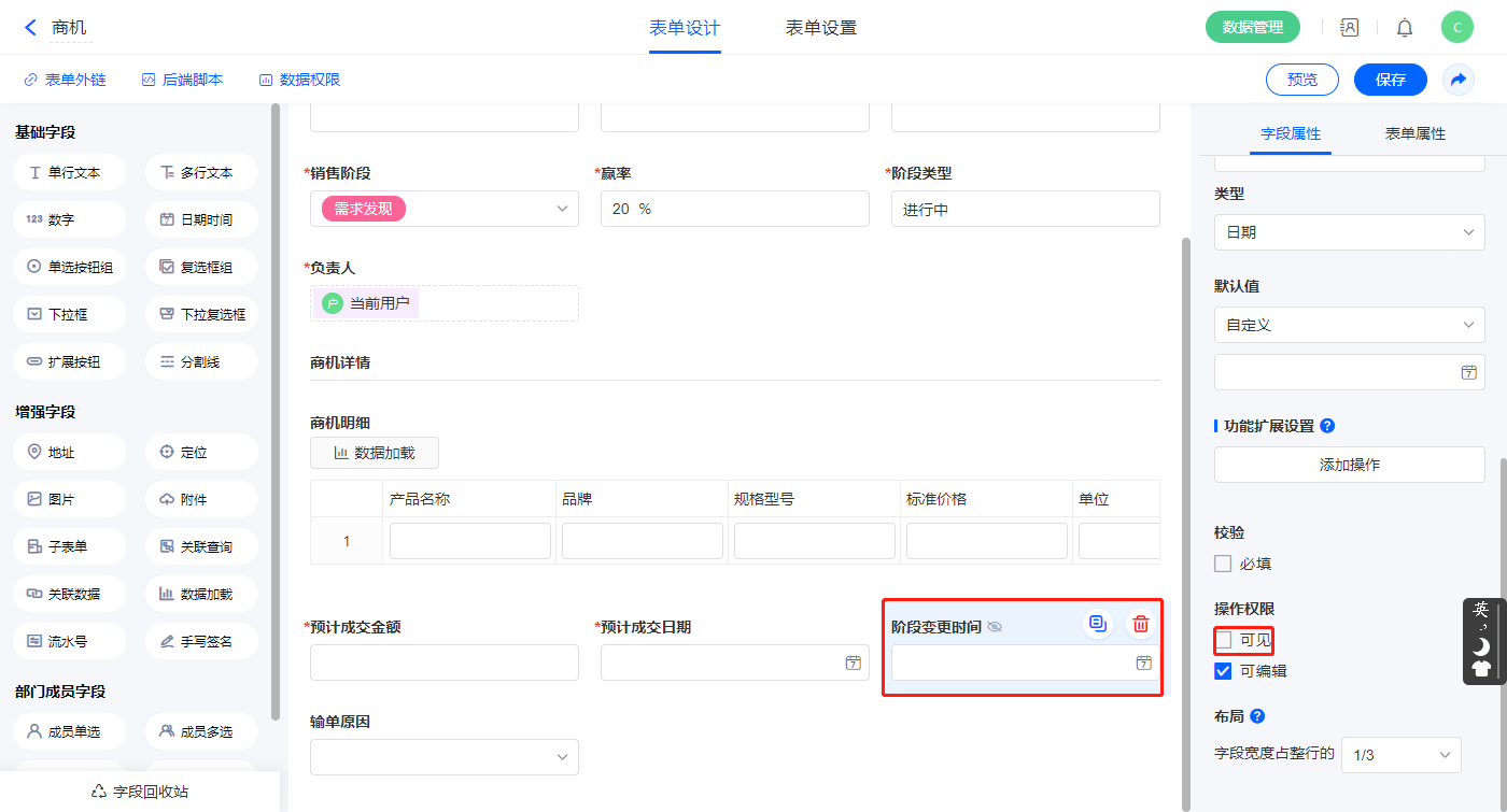 2.4、辅助表【更改销售阶段】字段及表单属性设置