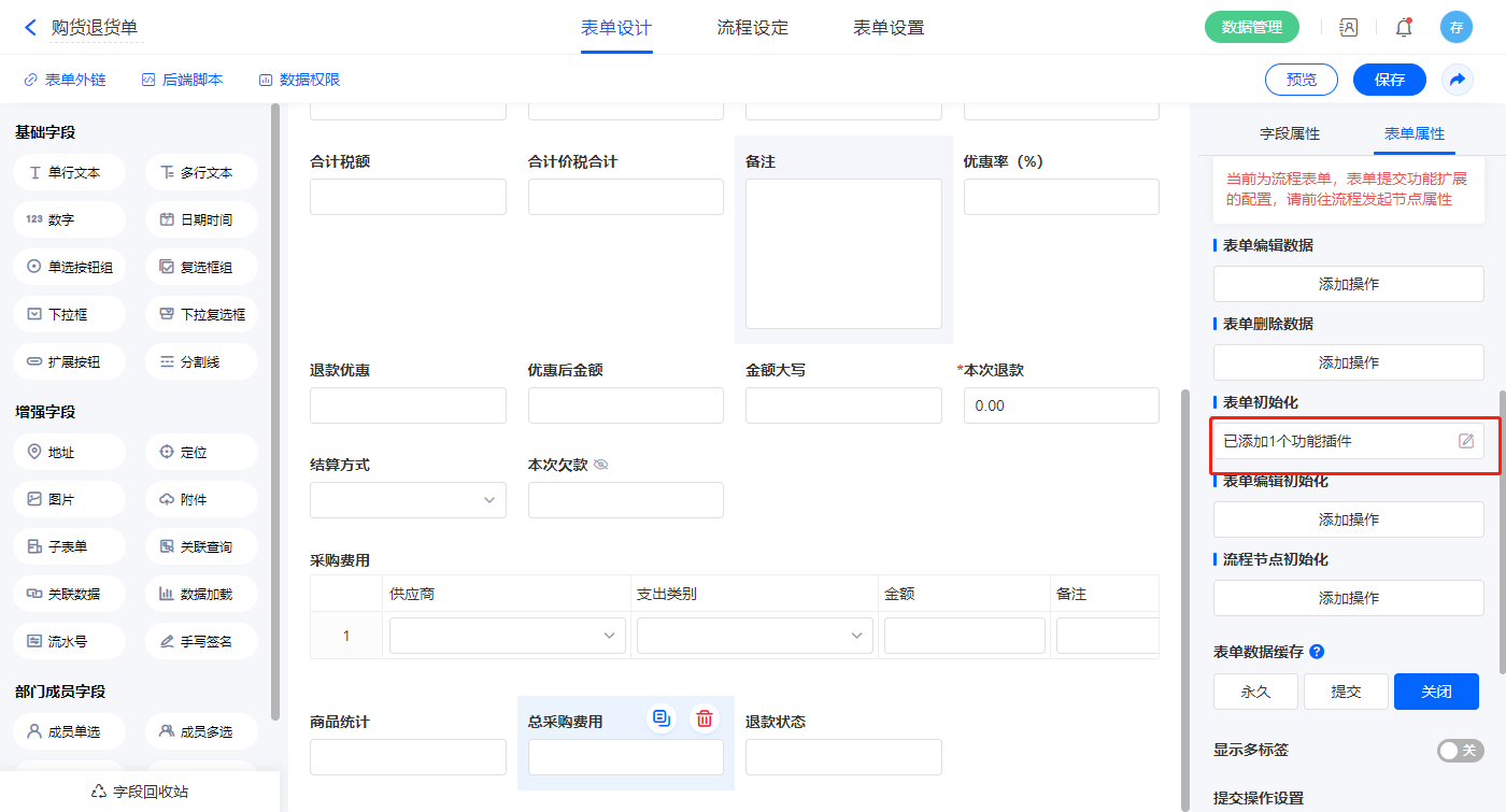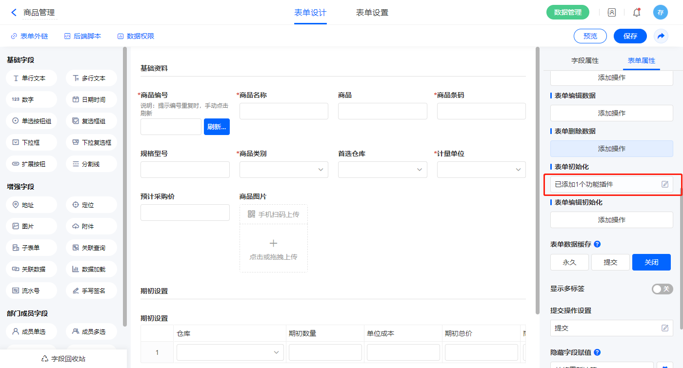 3)表单初始化新增功能模块【表单弹出-关联数据到子表单】;