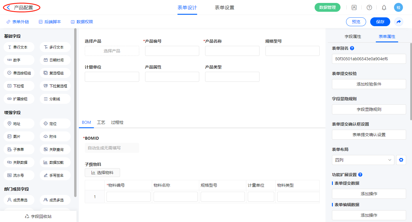 2.4、表单【产品配置】字段及表单属性设置