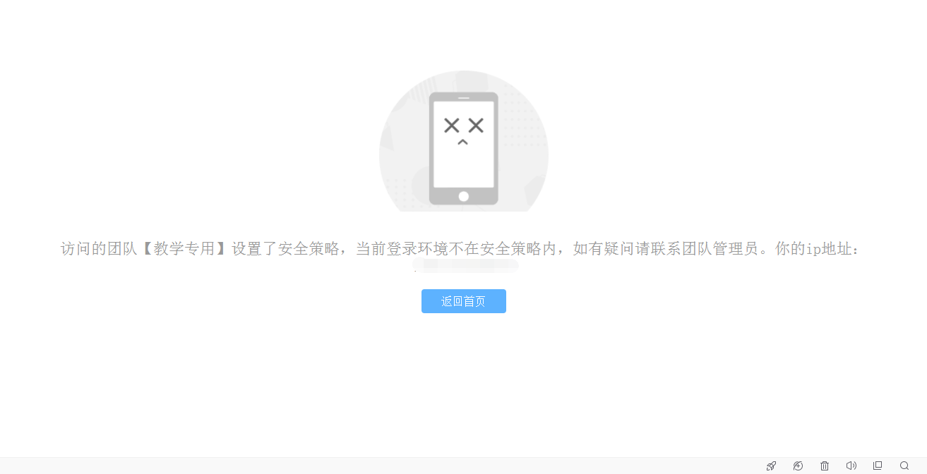 不在安全IP范围内的用户访问团队的时候会直接提示:当前登录环境不在安全策略内;