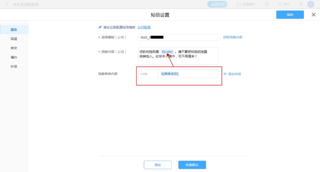 流程表单设置短信消息模板
