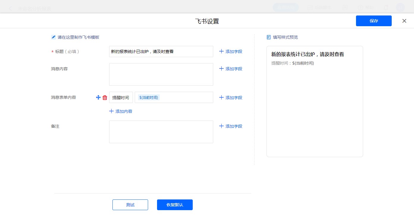• 报表定时提醒设置飞书消息模板