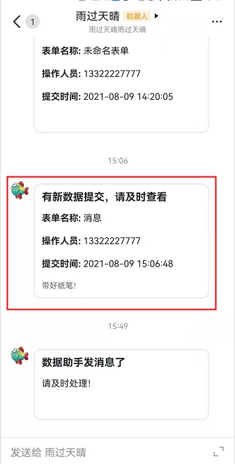 • 收到普通表单飞书消息