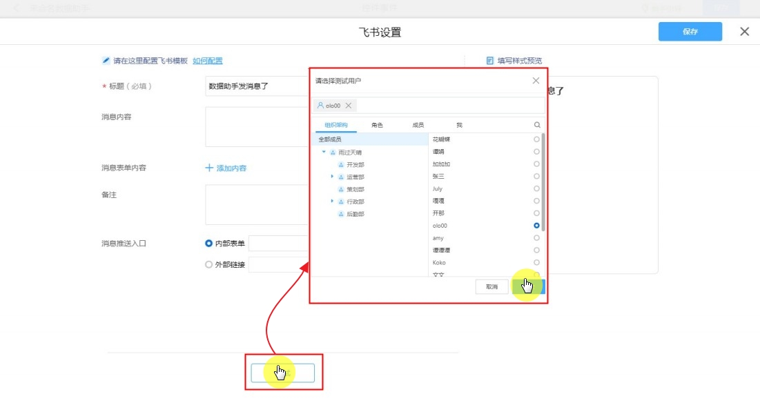 数据助手设置飞书消息模板