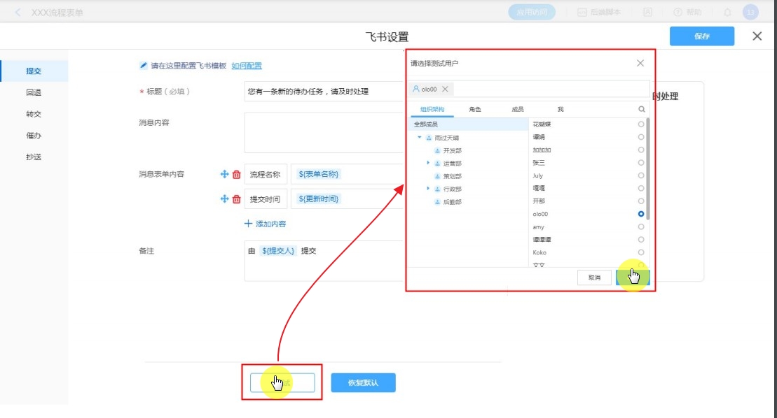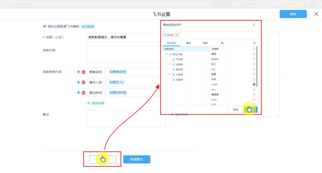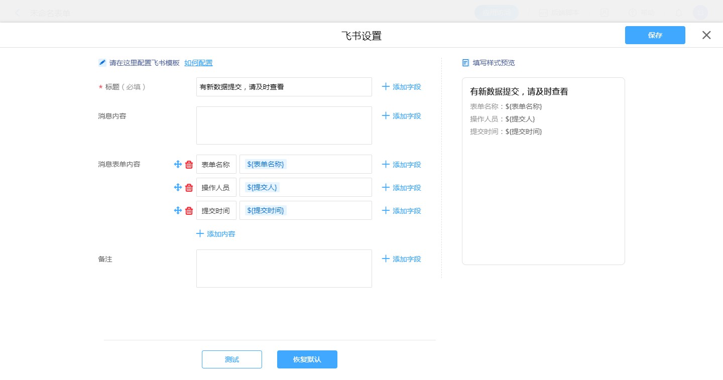 普通表单设置飞书消息模板