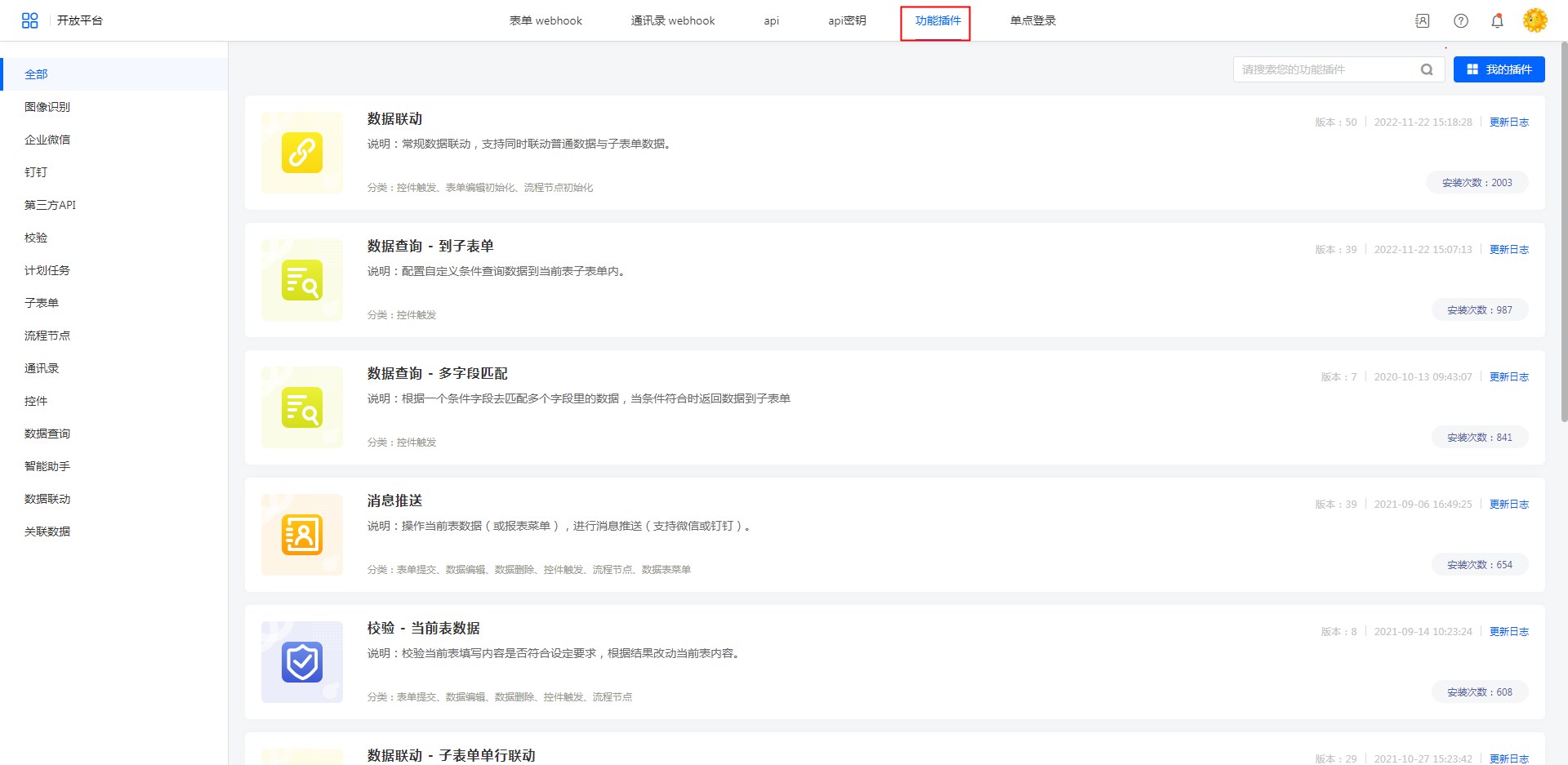 开放平台-功能插件管理