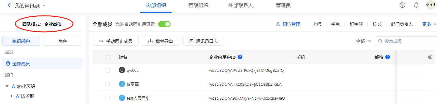 企业微信标签不会触发自动同步,需要在通讯录列表点击手动同步成员