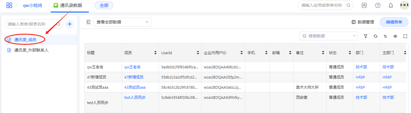 通讯录成员 同步到表单通讯录_成员