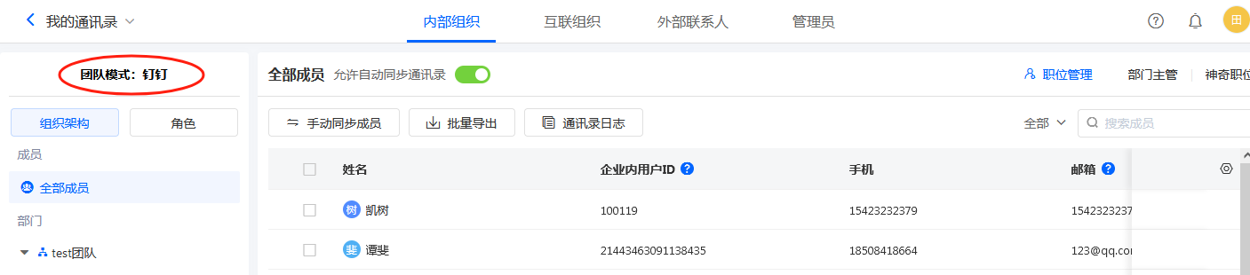 • 钉钉通讯录的同步与修改