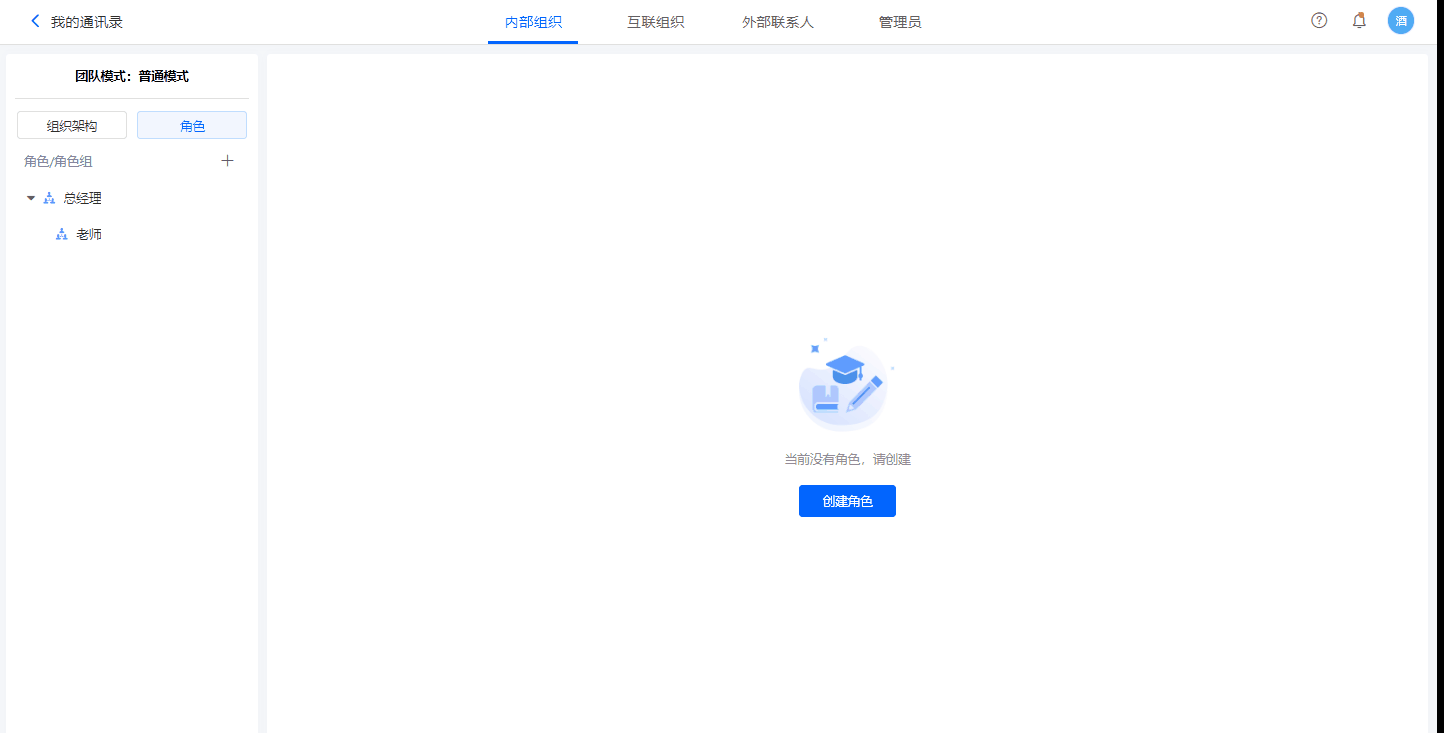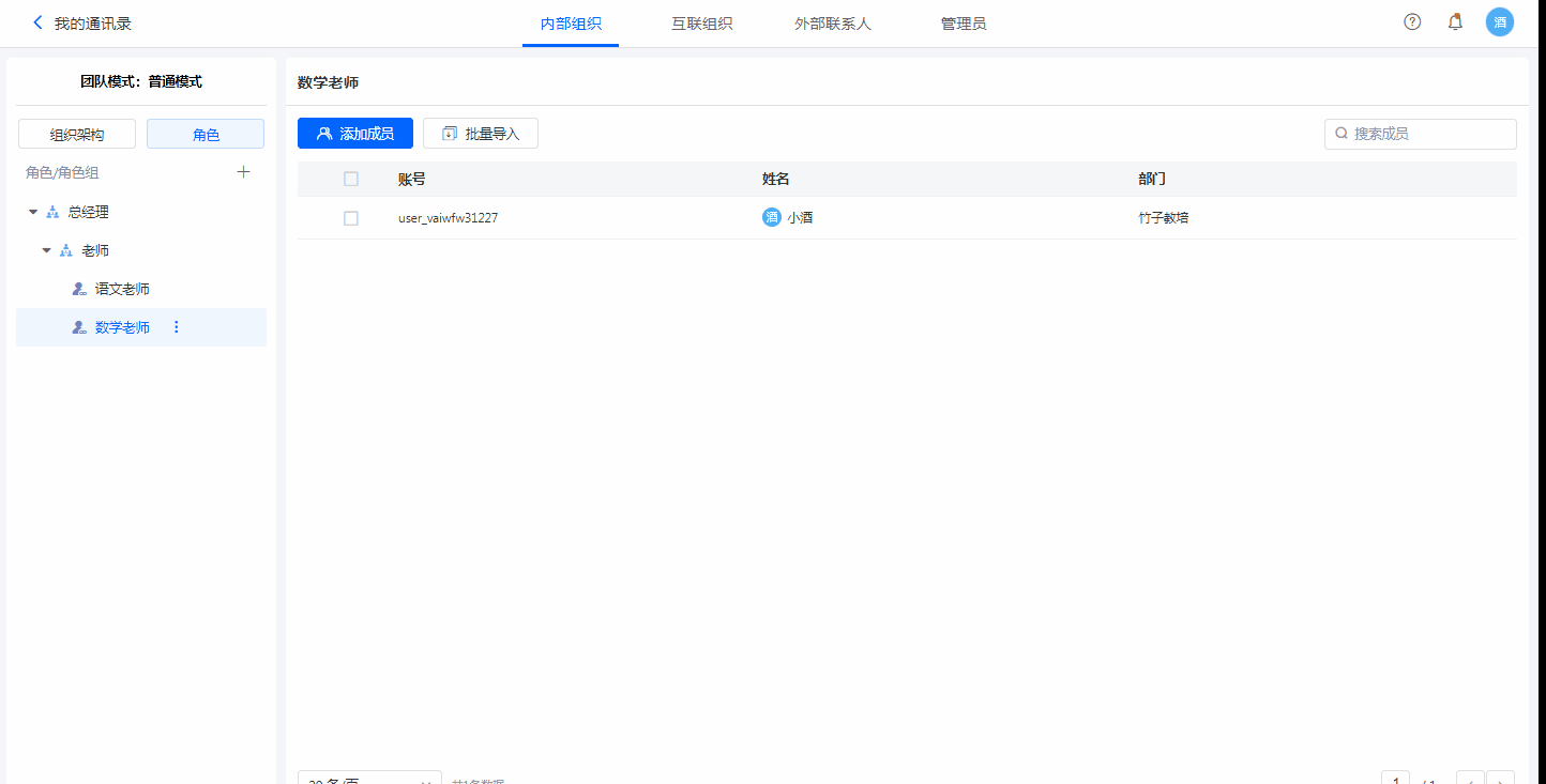 为满足公司内跨部门协作的需求,平台在组织架构之外新增角色功能。