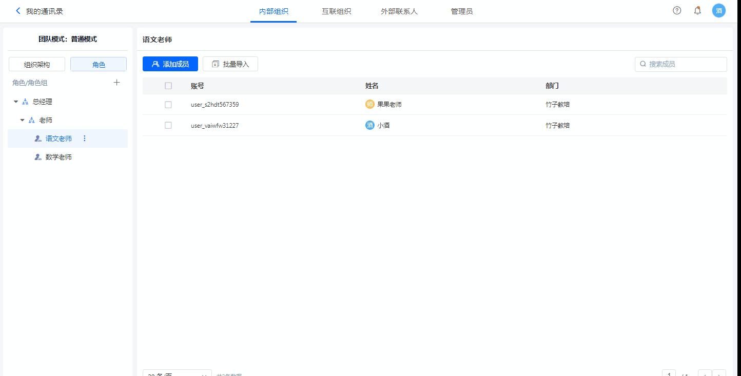 通过【添加成员】可以直接在当前角色组添加成员。