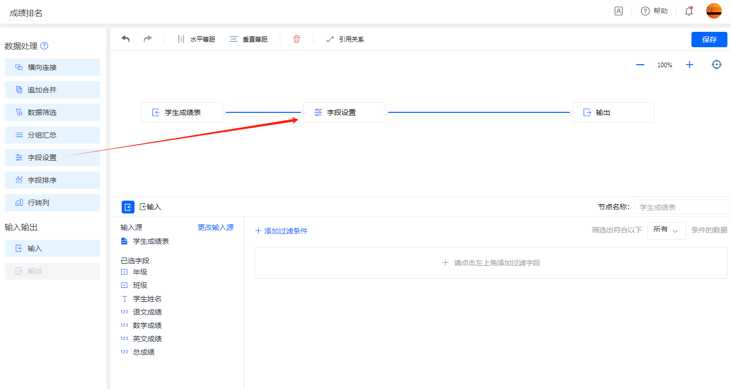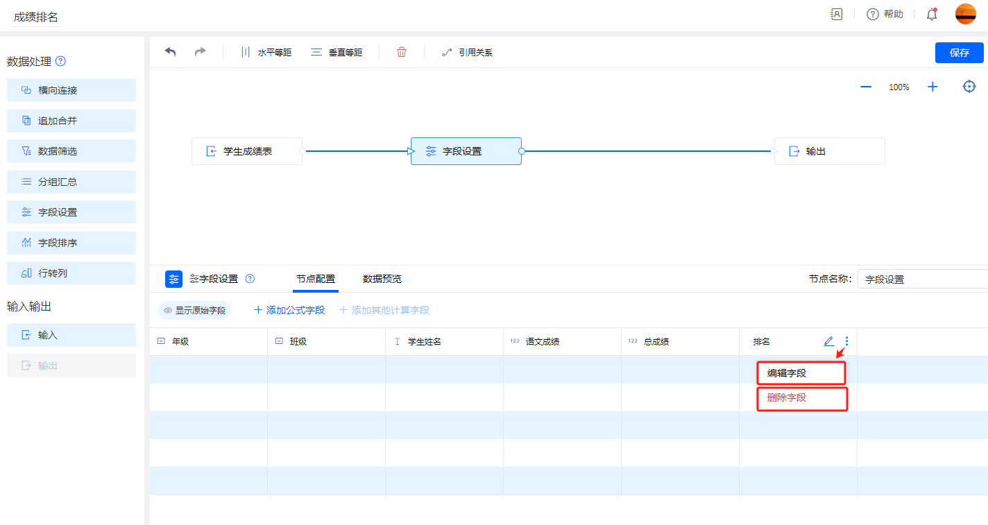1)添加的排名字段输出的数据结果为数值类型,支持被计算字段二次计算。
