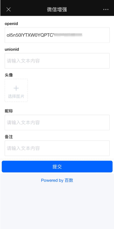 • 直接填写表单,后台自动获取,仅获取微信OpenID。