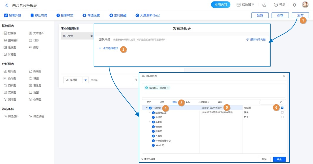 报表-发布,设置成员