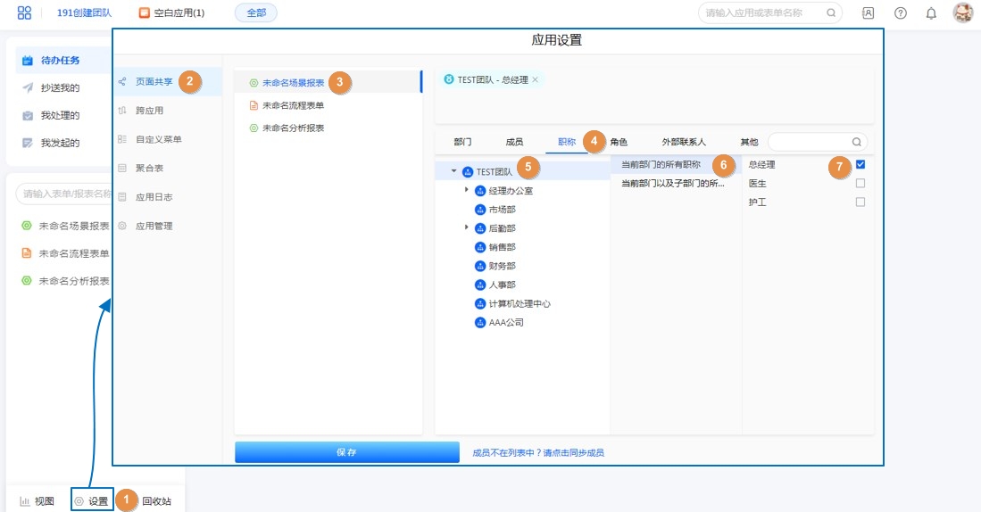应用设置-页面分享,设置成员