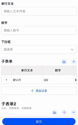 - 子表单行字段 支持数据加载,单行加载的数据只会填充当前行。
