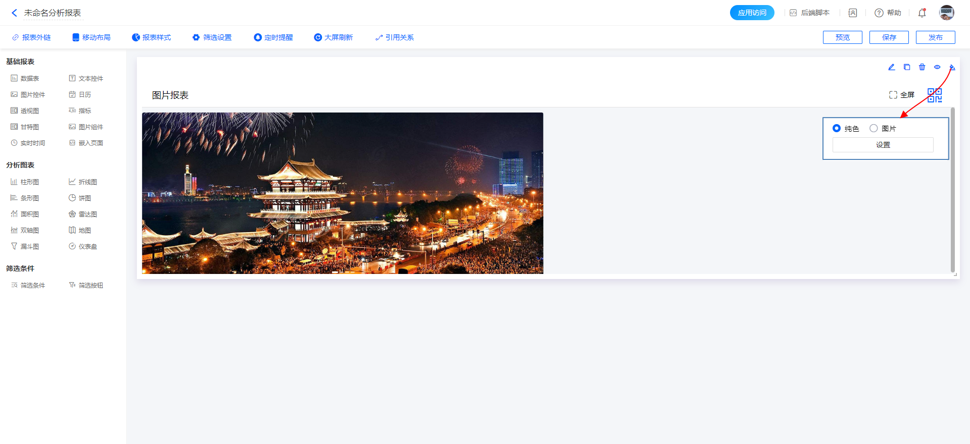 嵌入页面组件支持设置组件背景: