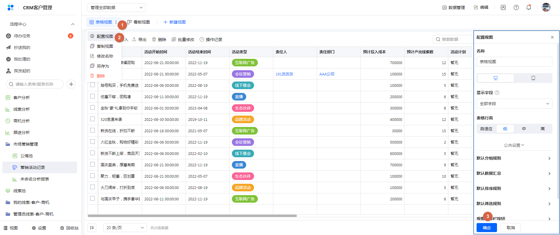 视图,是表单权限组中根据一定条件组合筛选后显示的数据结果。