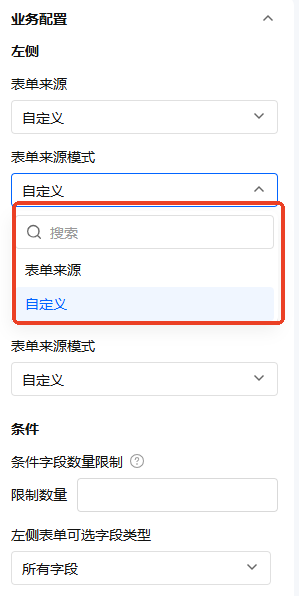 需配合【表单来源】字段一起使用,当表单来源选择【自定义】时,可以设置表单来源的表单或者是自定义。