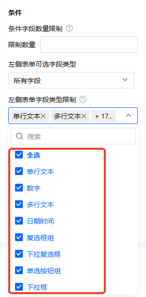 左侧/右侧表单字段类型限制
