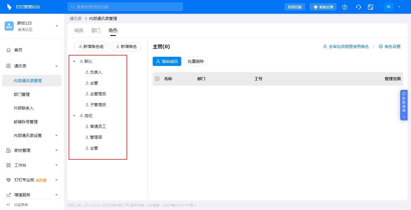 | 系统通讯录角色列表 | 钉钉通讯录角色列表 |