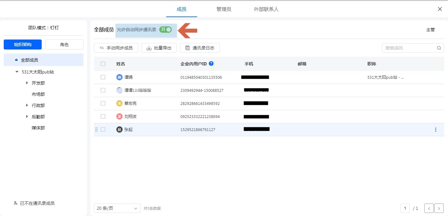 自动同步通讯录默认开启,在钉钉通讯录发生改变会自动进行同步操作。