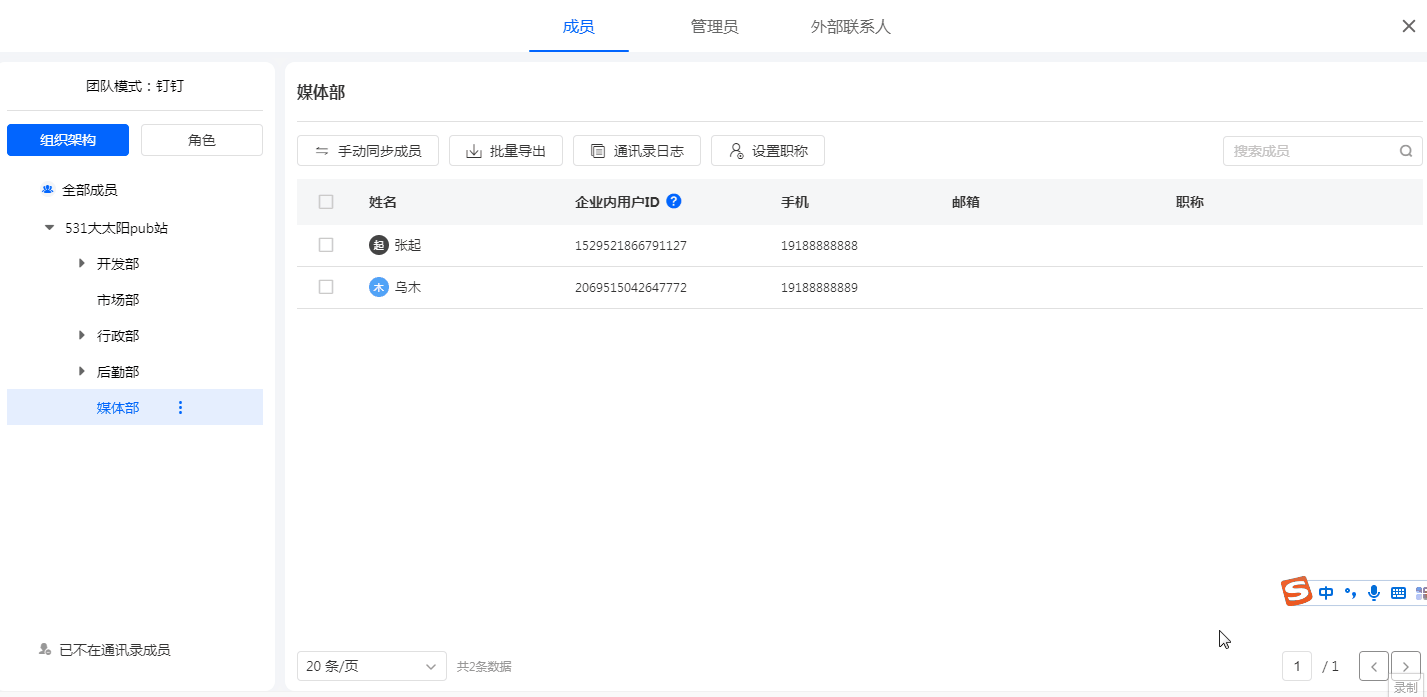 钉钉通讯录内的角色支持同步到系统通讯录中。