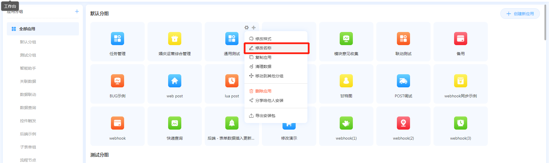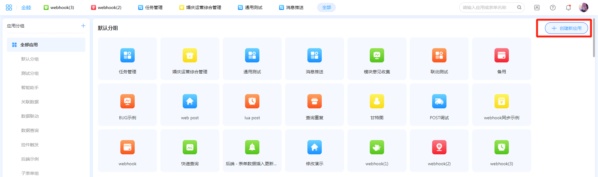 • 创建新应用