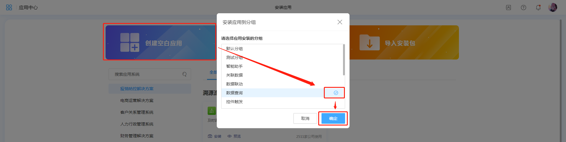正确的步骤应该是在工作台点击创建新应用->创建空白应用。