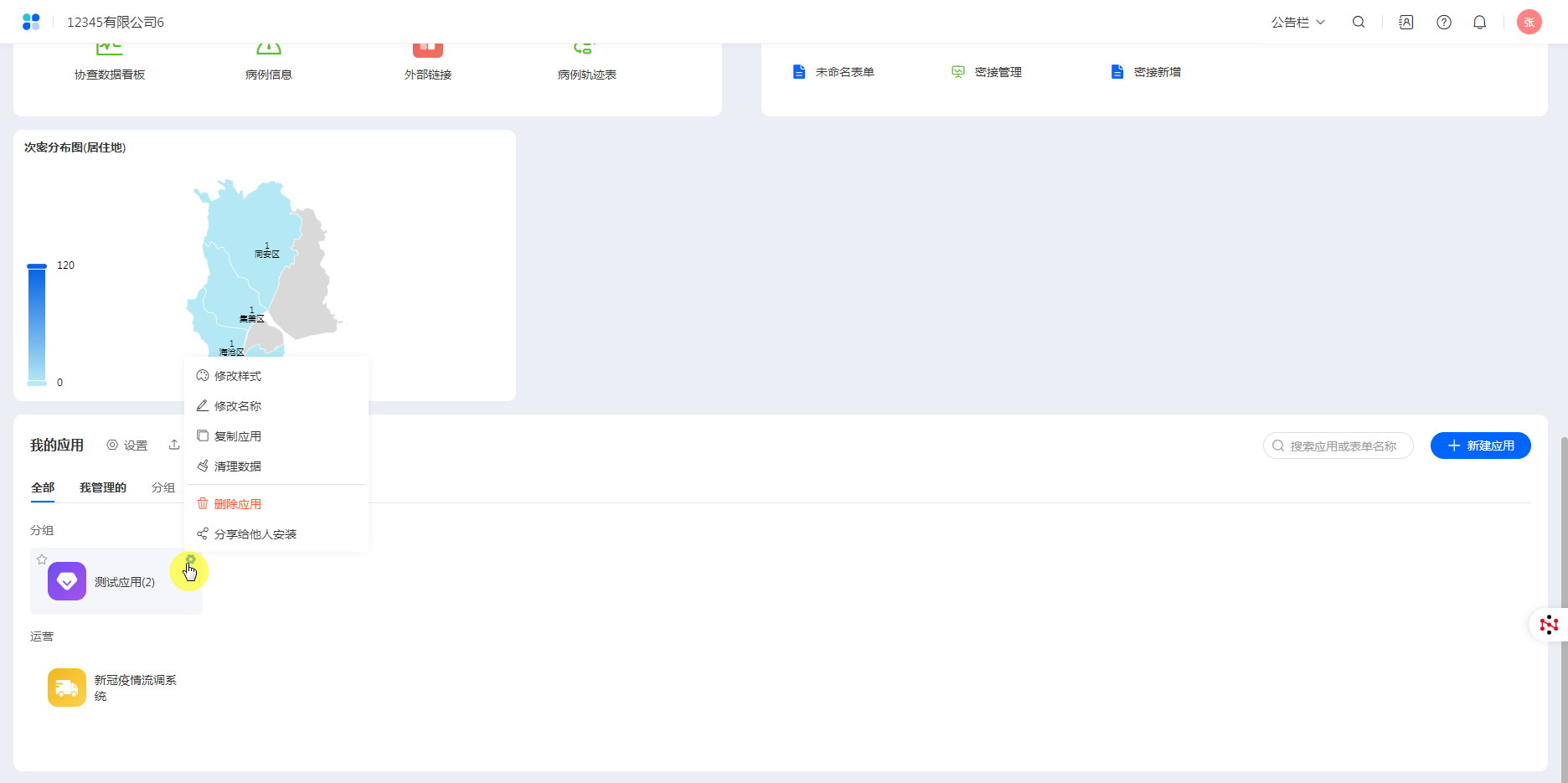 注意:删除应用会将该应用内部的表单、报表、数据一并删除,且不可逆,请慎重操作!