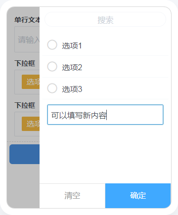 1. 可设定若干固定文本选项,进行快速选择填写。(单选框)