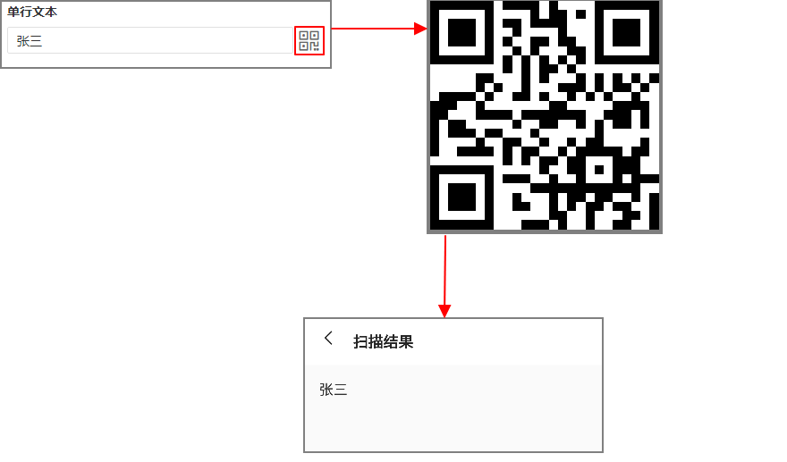 勾选扫码输入后,在填写表单时可以扫码读取到条形码或者二维码中包含的信息,并显示在单行文本中。